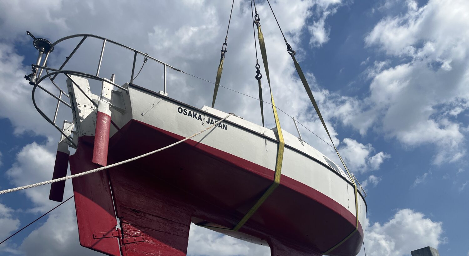大阪府吹田市にある万博記念公園に展示されている信天翁(あほうどり)二世号の修理を開始致しました。