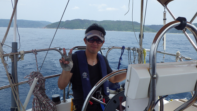 名瀬港は2時間で出港し、凪の海を機帆走で沖縄へ向かう。夜には嵐が待ち受けているのを知らずに、3人ともご機嫌になる。