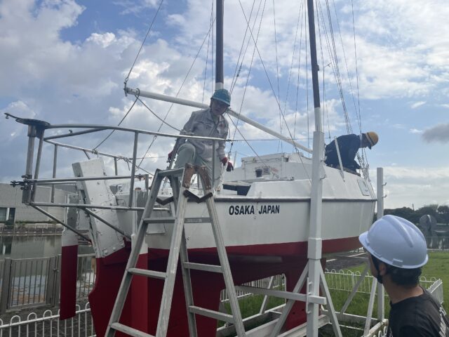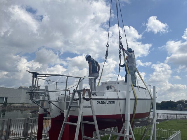 大阪府吹田市にある万博記念公園に展示されている信天翁(あほうどり)二世号の修理を開始致しました。