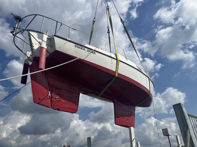木造艇の為、長年の風雨による劣化が進んでおり、青木ヨットへ持ち帰り、大規模な修理、修復を行います。