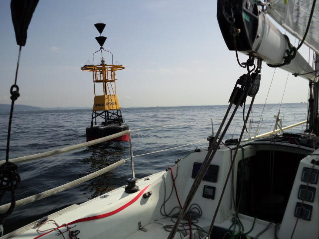 写真は先月20日に油壺への回航途中、関東レースチームの練習に遭遇できるかもと、昼過ぎに浦賀沖を航行中に撮影した香山根の浮標の写真です。