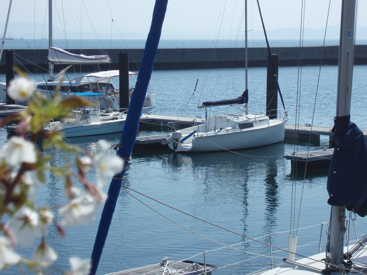 横須賀校のヴェラシスマリーナには春が訪れています。 写真は、桜の花びら越しのAH24です。 なかなか画になるでしょ?