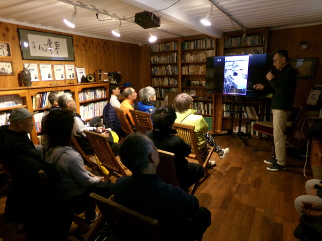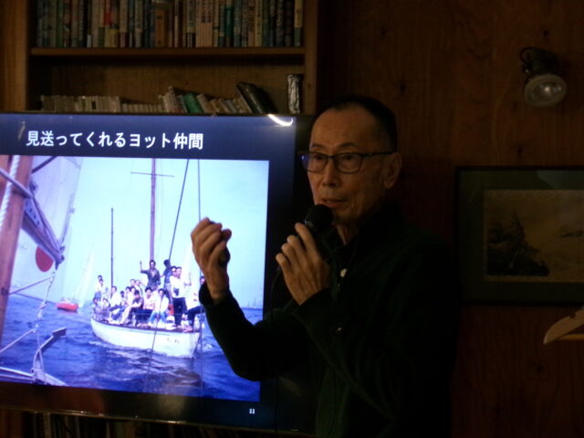 その代わりに急遽、信天翁二世号による世界一周の記録を、当時の写真を用いたスライドショーで青木校長に講演して頂き、お集まりいただいた方々にご参加いただく事が出来ました。
