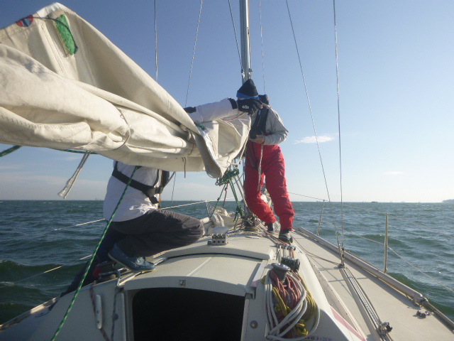 天気、好すぎ~~ (笑) 12月の練習テーマは、「ヒーブツー」です。これは、帆を張った状態で船の行続きを読む