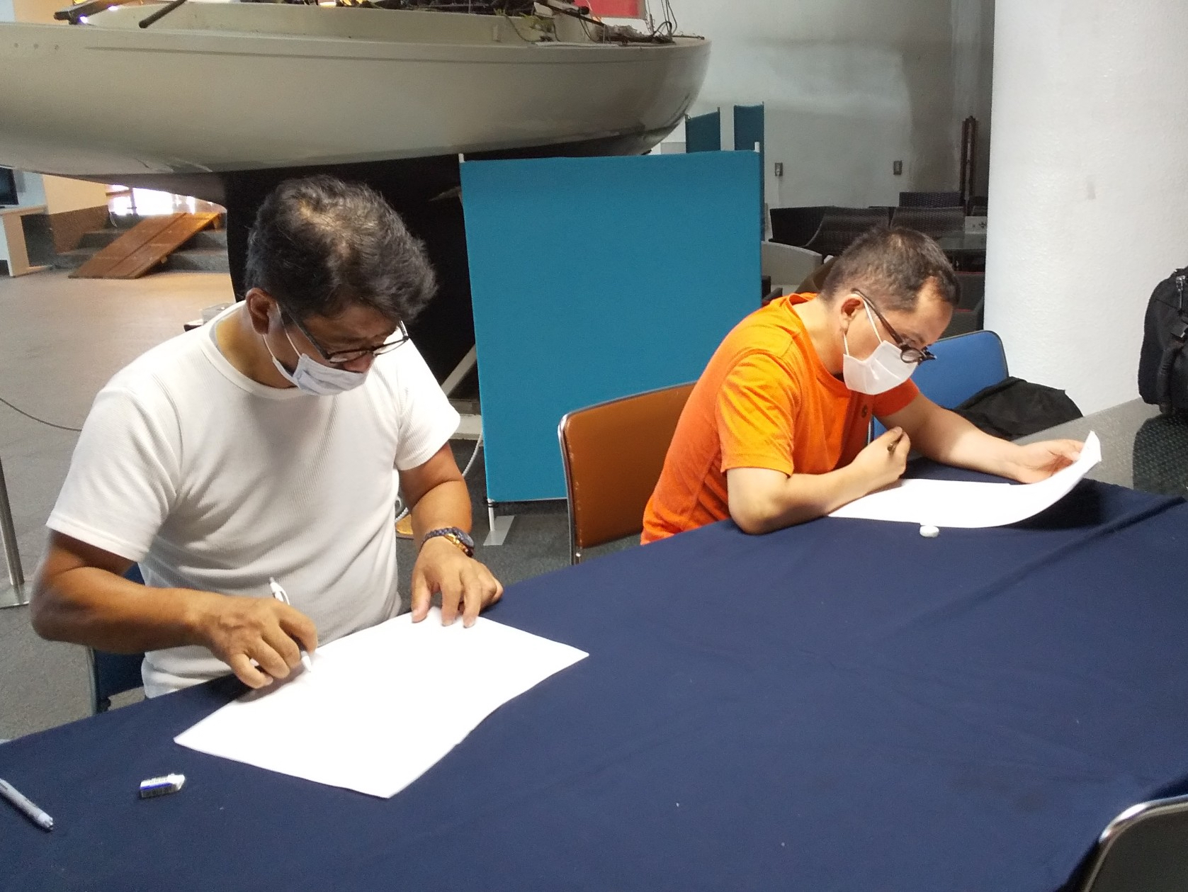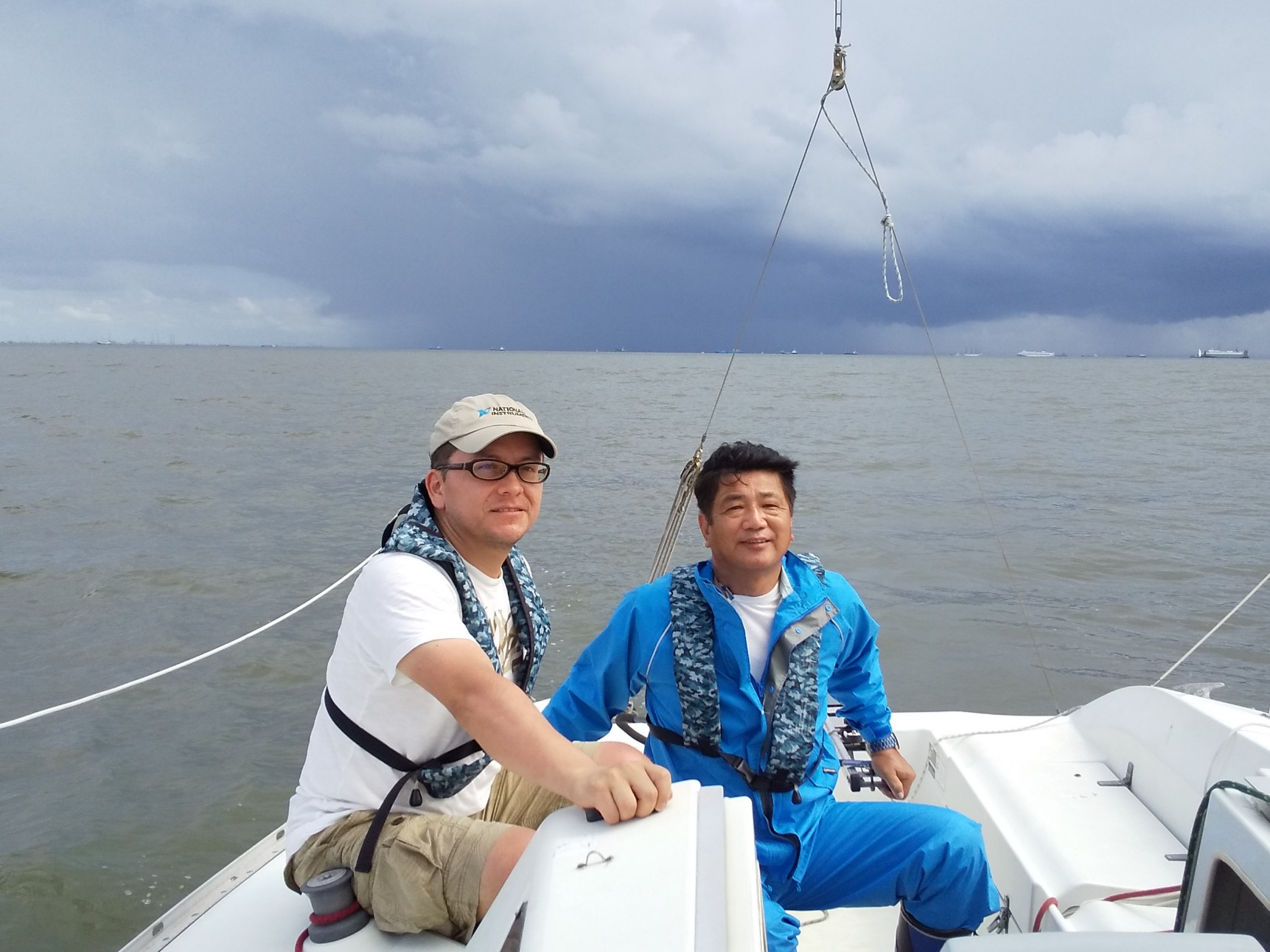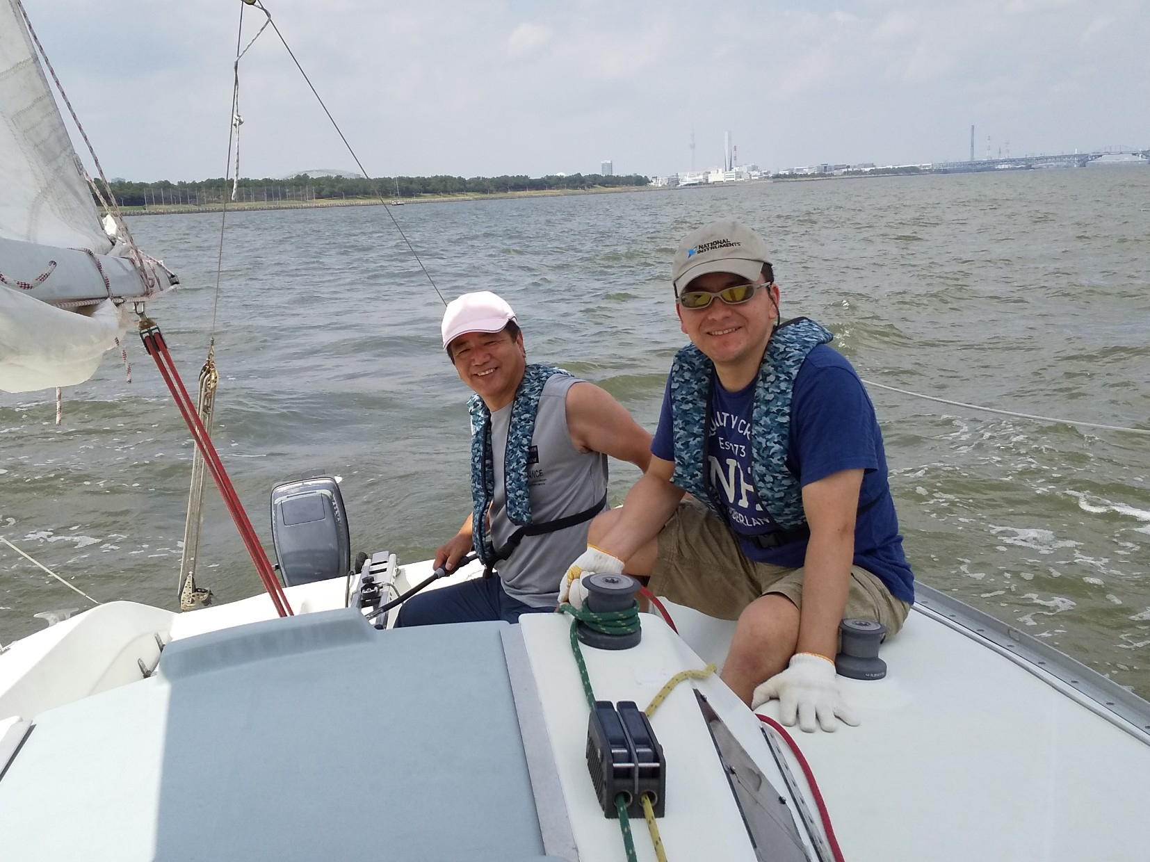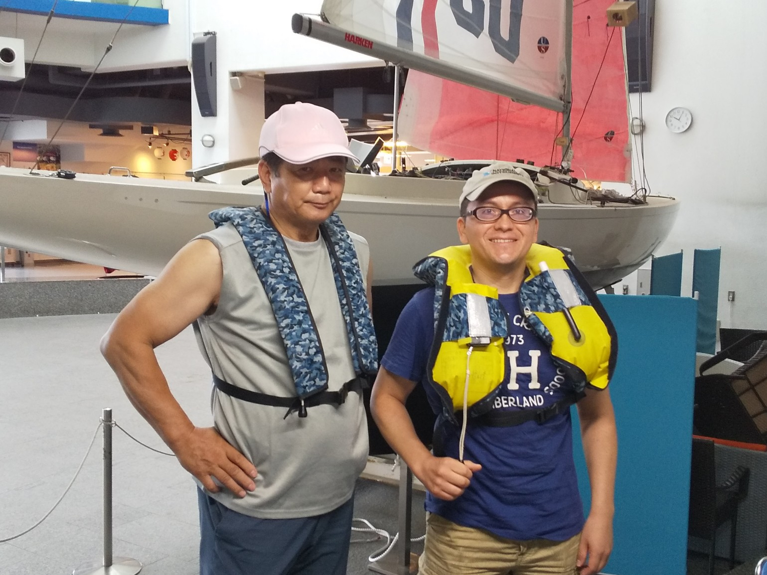 男性2名が参加されました。そのうちおひとりはメキシコからの方でしたが、日本語が堪能で最終試験も日本語で受けられて、優秀な成績で合格されました。晴れも雨も強風もあり、様々なコンディションの中で、風を利用した離着岸、落水者救助、各風位へのセイリング、タッキング、ジャイビング等を実習しました。(Heday)