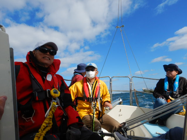 出航したら、思ったほど風が強くなくレギュラージブ、フルメインでブロードリーチで目的地に向かう。