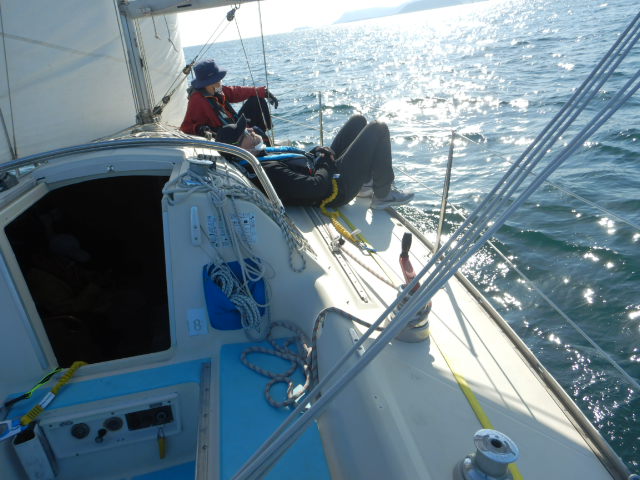 メインセイルなしでの帆走となったが、平均的に5~6ノットで帆走でき、予定時刻に寄港することができた。
