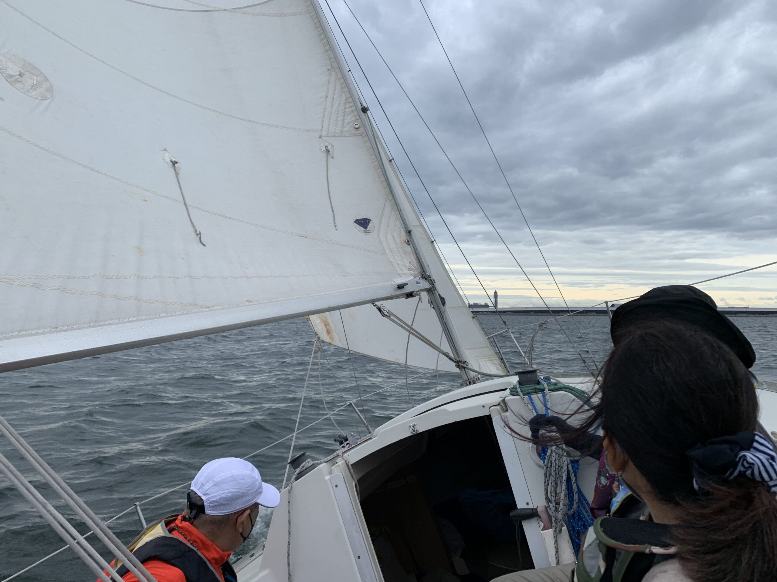 雨の予報だったのですが、丁度海上に出たぐらいから雨がやみ、気持ちよくセーリングして頂けたと思います。