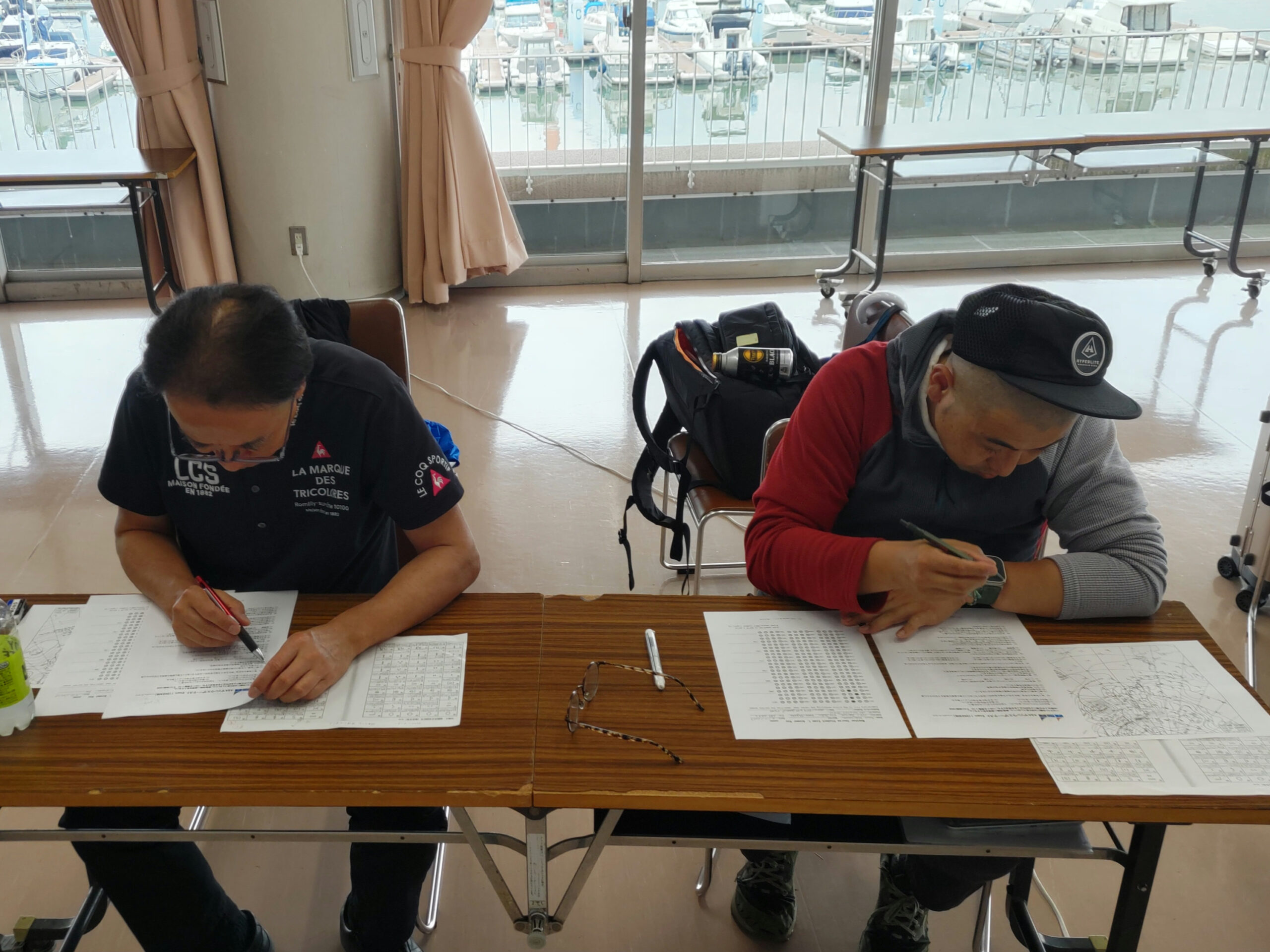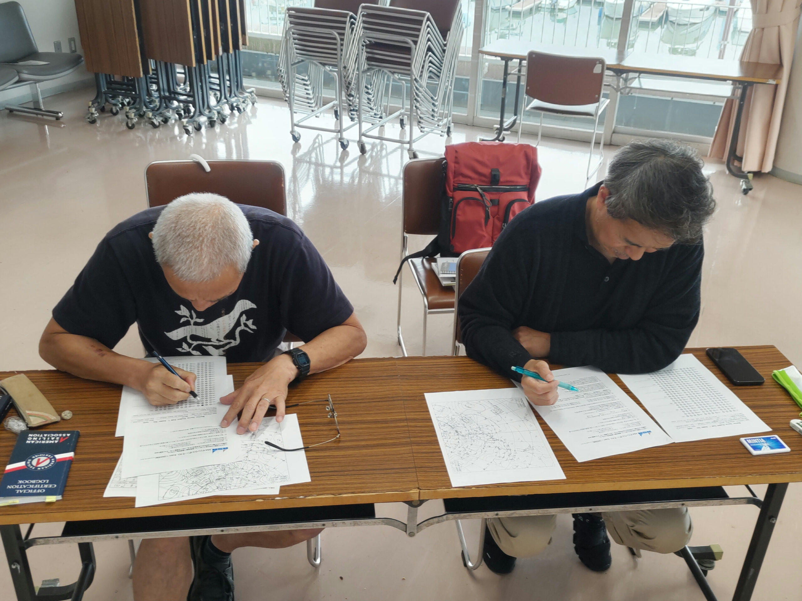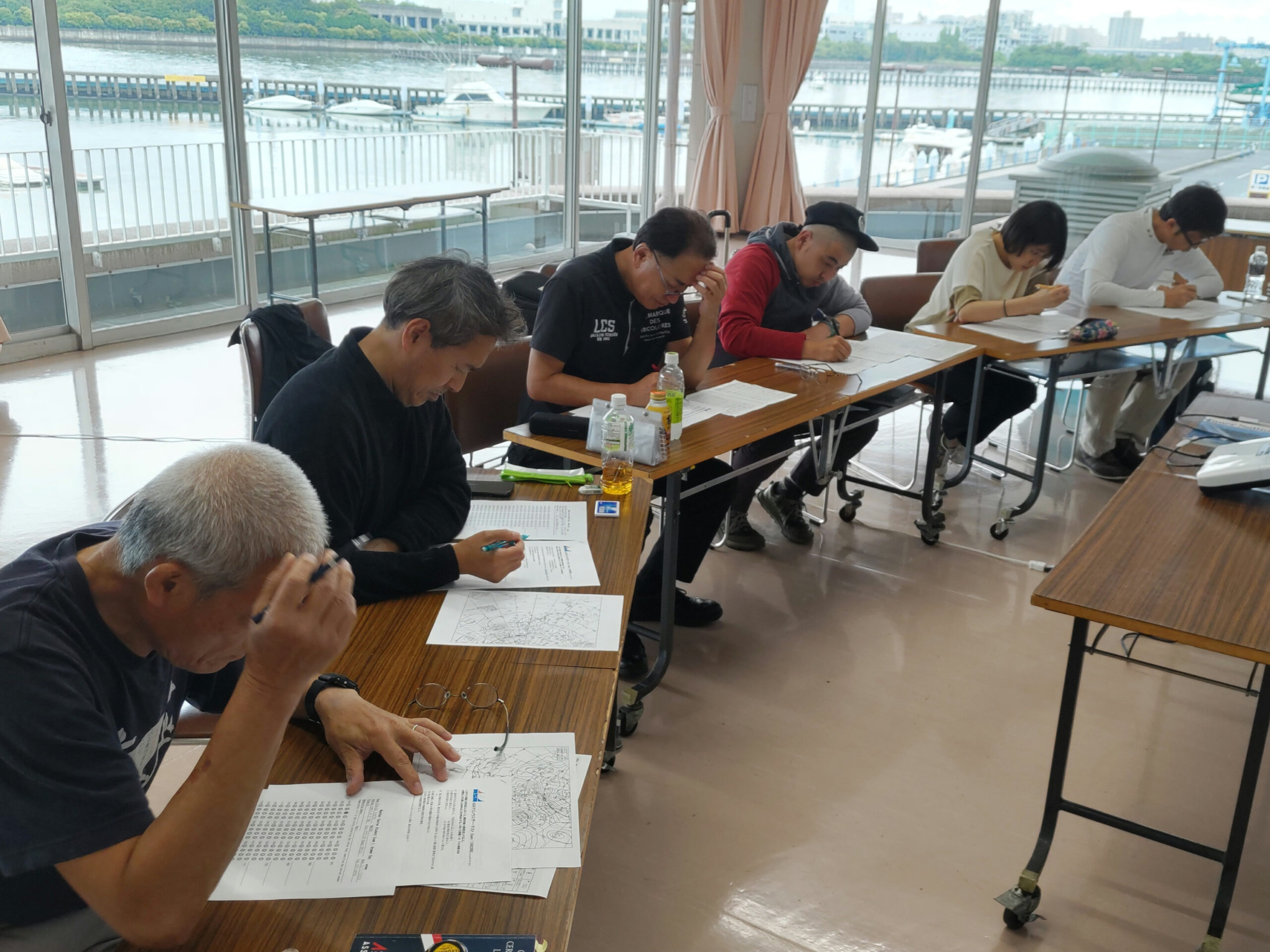 気象、海象の基礎・基本を確認しつつ、実際の航海の際にそれらをどう活用するか、理論と実践場面での応用術を往復して理解を深めていきました。教室を広く使って「台風役」と「フネ役」に分かれ、風向の変化から安全性の高い航行エリアを探るなど、頭脳と身体をフル回転させる模擬実習も組み込まれました。最後は国際式の天気図を解読しながら最終試験に挑戦し、全員が優秀な成績で合格しました。(Heday)