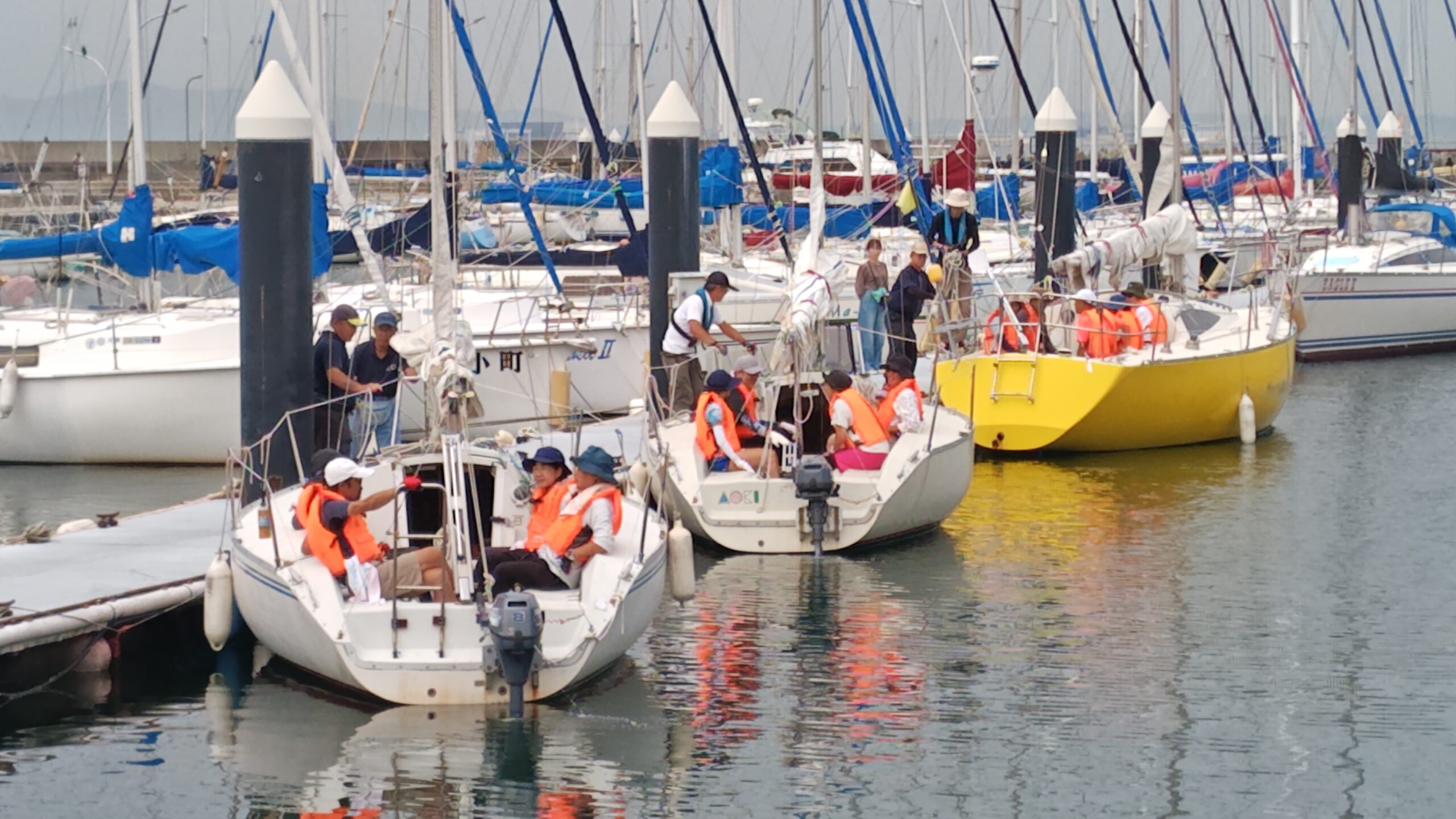 37名にご参加いただき、青木ヨットスクールの教習艇3艇(Y23×2艇、Y30S×1艇)を使い、出航。