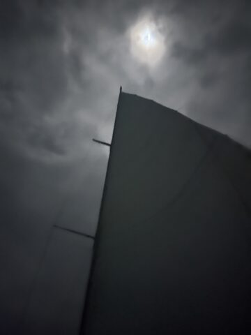 沼島付近から風が吹き出し、追い風で月明かりの下、セイリング開始。