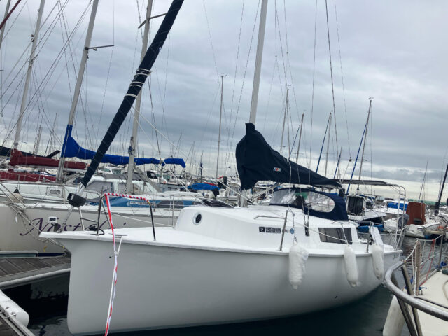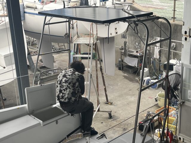 今回のZEN24は係留バースに電源が無い為、最新の大型ソーラーパネル+コクピットアーチを取付。