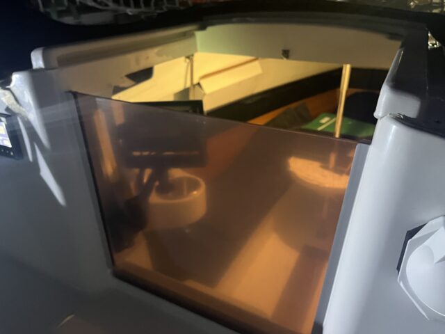 ドッグハウス前面に艤装された丸窓と、ポリカ製の透明差し板はオーナー様の拘りのポイントです。