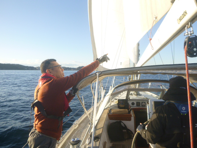 Syさんは40feet艇のオーナーになりました。故郷の海に向けて、500海里の航海が始まるのです。今日は気の合う仲間と、仕上げのトレーニングをしました。 (あ)
