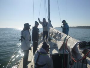 12月の練習テーマは、「ヒーブツー」です。これは、帆を張った状態で船の行き足を止めるテクニックです。(船を止めるではない) イメージとしては、安定して漂うというのが良いかもしれません。帆船は帆を操ってこそ帆船なのです。