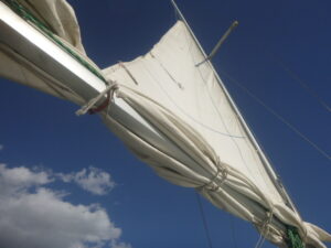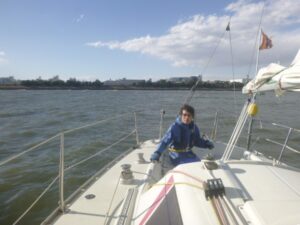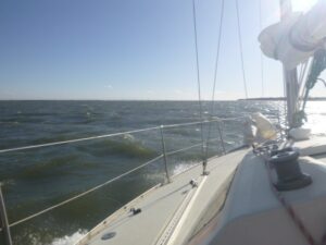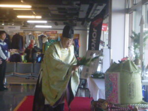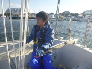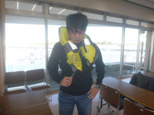 風が強くなると、アクアライン(東京湾横断道路)に速度規制がかかります。もっと強風だと通行止めになります。そんな天候でも、NhさんがSBD(Safe Boating & Docking)に挑戦しました。折しも、マリーナでは新年の安全祈願祭が執り行われていました。我々も、授業の合間に参加したので、もう安全です。(嬉) (あ)