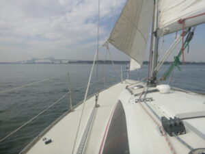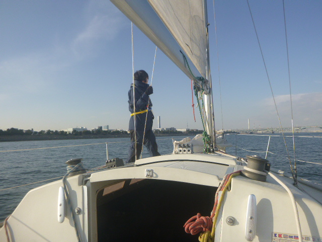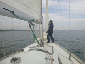 NhさんがBKB(Basic Keel Boat)に挑戦しました。「キールボートって、どんな艇?」という質問から始まったこのコースでは、船舶法規も勉強します。たまたま1人での受講だったので、まるでVIPコースのようでした。(笑) (あ)