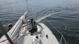 微風でしたが、セーリングでもタッキング・ジャイビングを何度も繰り返してマスターしてもらいました。