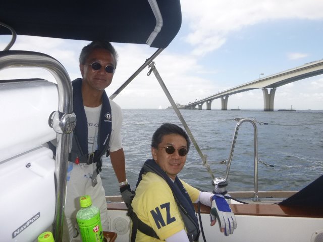 東京湾内の帆走でしたが、遠回りしてアクアラインをくぐりました。ここは、先日セーリングクラブが参加したスバルザ杯のコースです。