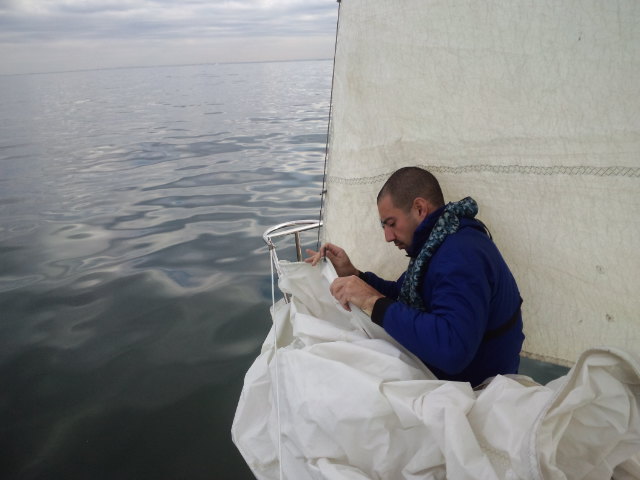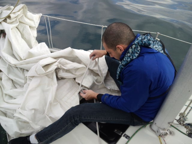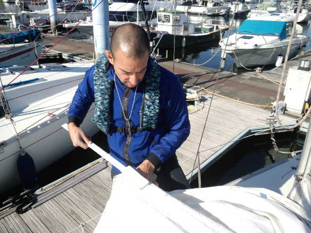 タッキング、ジャイビング、ヒーブツーなどとともに、セールの畳み方もきっちり習得!
